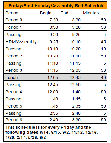Tuesday, February 17th Bell Schedule - All 6 Periods